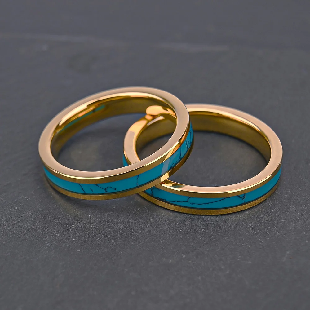 Natural Turquoise Inlay Gold Tungsten Ring (4mm)